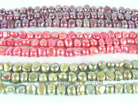 Wholesale pearl jewelry : 7-8mm smooth on both sides pearl strands in olivine color